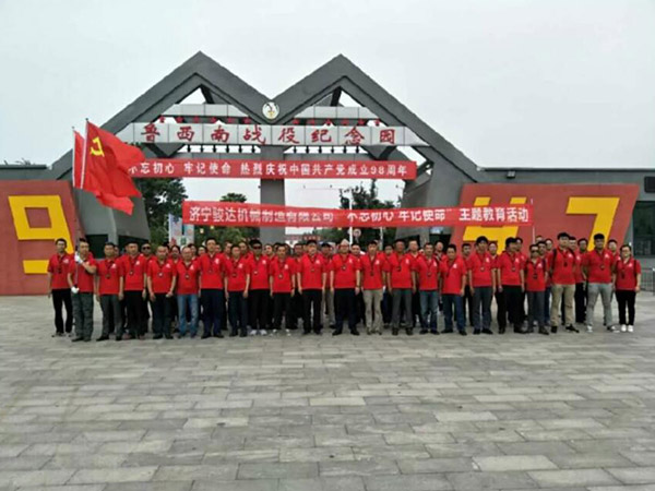 為認真貫徹落實《濟組明電〔2019〕6號關(guān)于開展慶祝中國共產(chǎn)黨成立98周年主題黨日活動的通知》文件精神,激勵黨員領(lǐng)導(dǎo)干部高舉習(xí)近平新時代中國特色社會主義思想偉大旗幟,樹牢“四個意識”,堅定“四個自信”,堅決做到“兩個維護”,堅定理想信念,銘記歷史,珍惜和平,始終牢記共產(chǎn)黨員的初心和使命,以堅定的信念,堅毅的品格,敢擔(dān)當(dāng)、做表率。2019年6月29日,濟寧駿達機械制造有限公司在魯西南戰(zhàn)役革命紀(jì)念館,組織開展“不忘初心、牢記使命”主題教育活動。公司總經(jīng)理苗翠波同志、黨委書記張鐵巖同志及公司領(lǐng)導(dǎo)班子,全體在職黨員共計80余人參加活動。