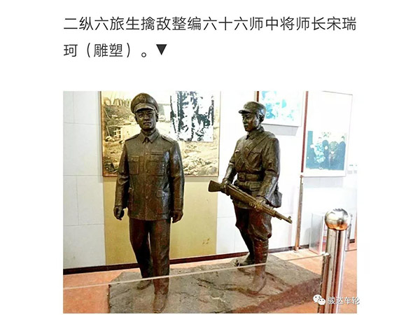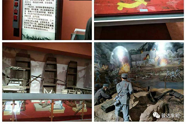 之后,全體黨員參觀魯西南戰(zhàn)役紀(jì)念館,這是一座集聲、光、電一體現(xiàn)代化全景畫館,館內(nèi)陳列著一些鮮為人知的珍貴歷史照片、電文、書信和實物等,其中有毛主席給劉、鄧首長的親筆信;有當(dāng)時晉冀魯豫野戰(zhàn)軍司令部發(fā)布的"渡河命令"電文;有劉伯承、鄧小平同志過黃河以后的合影;有我軍挺進大別山途中的照片;有我軍包圍羊山之?dāng)澈蜕龜痴幜鶐熤袑⑺稳痃?、少將參謀長郭雨林的照片;還有《人民日報》、《冀魯豫報》、《大眾日報》當(dāng)時報導(dǎo)"魯西南戰(zhàn)役"和"羊山戰(zhàn)斗"取得輝煌戰(zhàn)果和勝利的消息等等。兵器廣場、直插云霄的東風(fēng)導(dǎo)彈,展翅欲飛的殲擊機,轟炸機,還有高高昂起的重型坦克和高炮群。這是一個又一個歷史實物,勾勒出一幅長長的戰(zhàn)爭畫卷,譜寫出魯西南戰(zhàn)役輝煌的戰(zhàn)爭史詩。在紀(jì)念館內(nèi),黨員們仔細觀看了珍貴的歷史照片、書信、遺物等史實資料,通過講解員的講解,了解了魯西南戰(zhàn)役的重要性,全方面而形象地了解了解放軍浴血奮戰(zhàn)的光輝歷史,近距離地感受紅色歲月中的革命情懷,心靈受到了強烈的震撼,思想獲得了極大的升華。