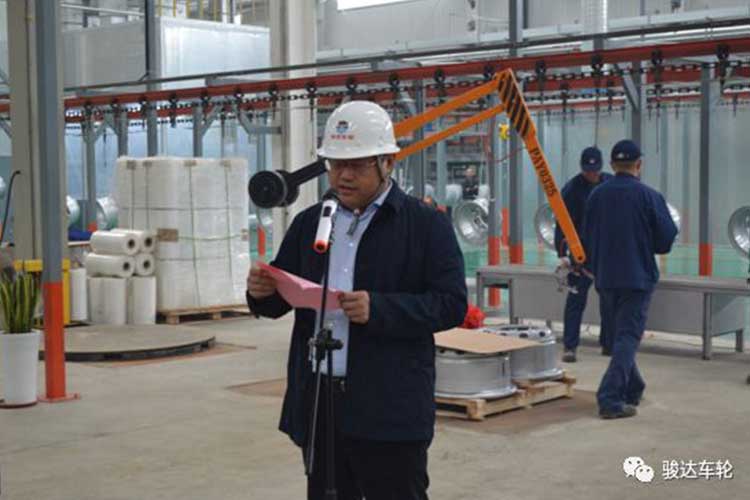 苗總在講話中對(duì)參與項(xiàng)目建設(shè)的單位、個(gè)人表示了誠摯的感謝,并指出2019年是公司不平凡的一年,是多方面抓管理、尋求變革的一年,也是處于跨越創(chuàng)新發(fā)展的關(guān)鍵一年。公司各項(xiàng)工作正在有序推進(jìn),新項(xiàng)目建設(shè)就是其中的重中之重,輪輞輪輻生產(chǎn)線、數(shù)控旋壓生產(chǎn)線、涂裝生產(chǎn)線及開卷、落料生產(chǎn)線、職工餐廳、研發(fā)中心的投入使用,標(biāo)示著一個(gè)全新的工廠即將多方面落成。今天涂裝線的運(yùn)行,實(shí)現(xiàn)了關(guān)鍵的一步,公司發(fā)展將進(jìn)入一個(gè)全新的階段。然后,苗總對(duì)各個(gè)團(tuán)隊(duì)工作在新的發(fā)展時(shí)期提出了新的希望。