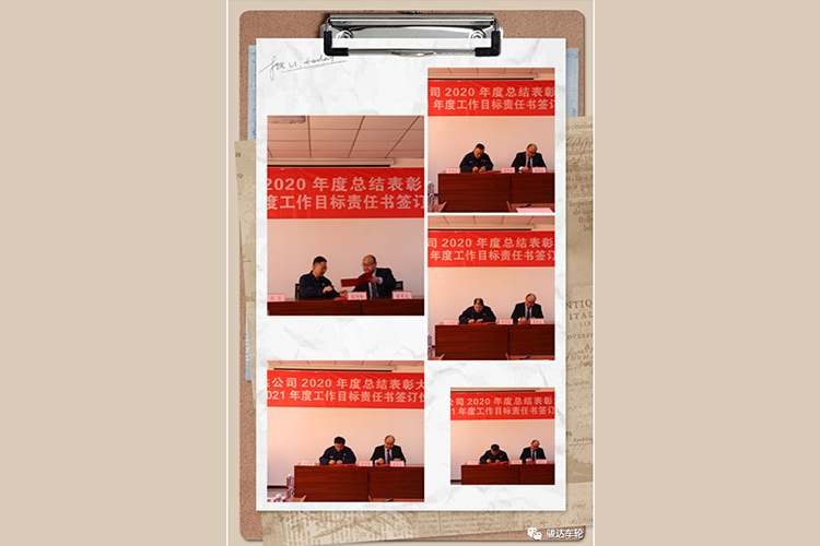 公司總經理苗翠波分別與山東駿馳機械科技有限公司總經理陳立、銷售管理中心總監(jiān)李繼文、技術研發(fā)中心總監(jiān)王汝峰、生產管理中心總監(jiān)汪有國、行政管理中心總監(jiān)張德彥分別簽訂2021年度工作目標責任書。