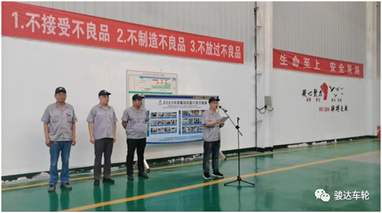 最后黨委書記張書記作出重要指示。張書記要求全體員工要統(tǒng)一思想,凝聚共識(shí)?,F(xiàn)在競(jìng)爭(zhēng)非常激烈,外部環(huán)境非常嚴(yán)峻,客戶對(duì)我們的產(chǎn)品的質(zhì)量提出了非常高的要求。這是牽扯到企業(yè)生死存亡的問題,也是牽扯到每一名員工飯碗的問題,大家要一定要高度重視。駿達(dá)公司走到今天非常不容易,駿達(dá)品牌在車輪行業(yè)是個(gè)老品牌,公司所有的員工都要維護(hù)車輪品牌。第二要各司其責(zé),擔(dān)當(dāng)作為。質(zhì)量提升活動(dòng)是要公司上下全體同事共同努力,從公司層面,只要是有利于質(zhì)量提升的工作,公司都支持,只要有利于質(zhì)量提升的投入,在資金緊張的情況下公司都給予支持。各部門要按照質(zhì)量管理體系文件職責(zé)要求,主要負(fù)責(zé)人要擔(dān)起責(zé)任,把部門的質(zhì)量職責(zé)落實(shí)到位。第三要全員參與,共創(chuàng)共享。質(zhì)量提升活動(dòng)不是為了搞一個(gè)形式,和每一個(gè)員工的利益都有關(guān)系,產(chǎn)品的質(zhì)量提升了,產(chǎn)品價(jià)格相應(yīng)提升,產(chǎn)品利潤(rùn)相應(yīng)提高,可以有相應(yīng)的效益回報(bào)。作為駿達(dá)人,要有職業(yè)榮譽(yù),以產(chǎn)品的質(zhì)量好壞為榮辱,每一名員工要發(fā)揮工匠精神,認(rèn)認(rèn)真真把本職工作做好。第四全體黨員在質(zhì)量提升活動(dòng)中要當(dāng)好表率,發(fā)揮黨員先鋒模范作用,這是對(duì)每一名黨員的硬性要求。最后張書記預(yù)祝質(zhì)量提升活動(dòng)取得圓滿成功,駿達(dá)公司事業(yè)蒸蒸日上。
