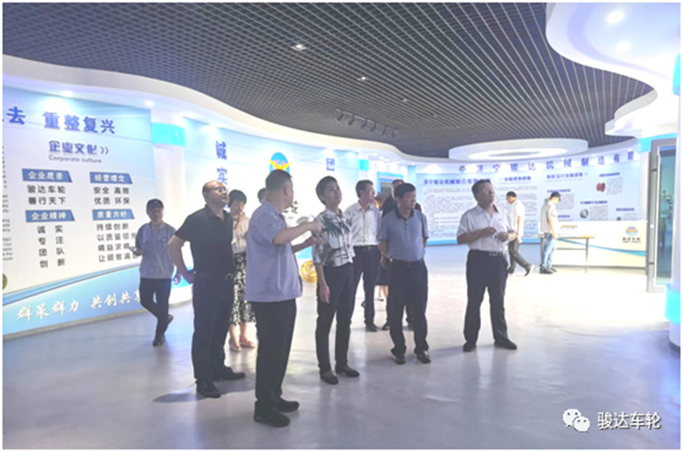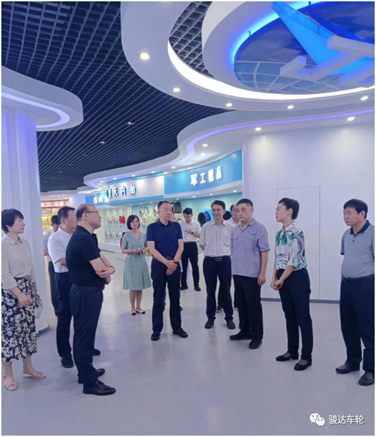 段主席一行首先參觀了公司展廳,聽取了駿達公司的企業(yè)榮譽、企業(yè)文化核心價值體系、公司發(fā)展歷程、業(yè)務(wù)板塊布局、核心產(chǎn)品技術(shù)、專利成果、戰(zhàn)略規(guī)劃等方面的介紹,詳細了解了車輪精品、軍工車輪等關(guān)鍵技術(shù),并對駿達價值觀引領(lǐng)、創(chuàng)新驅(qū)動企業(yè)發(fā)展的做法和取得的成績給予充分肯定。